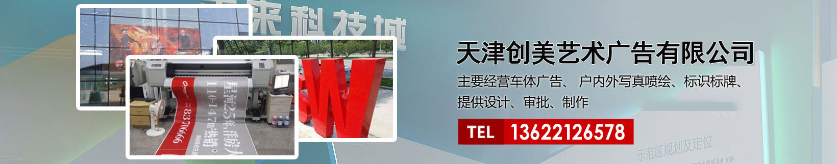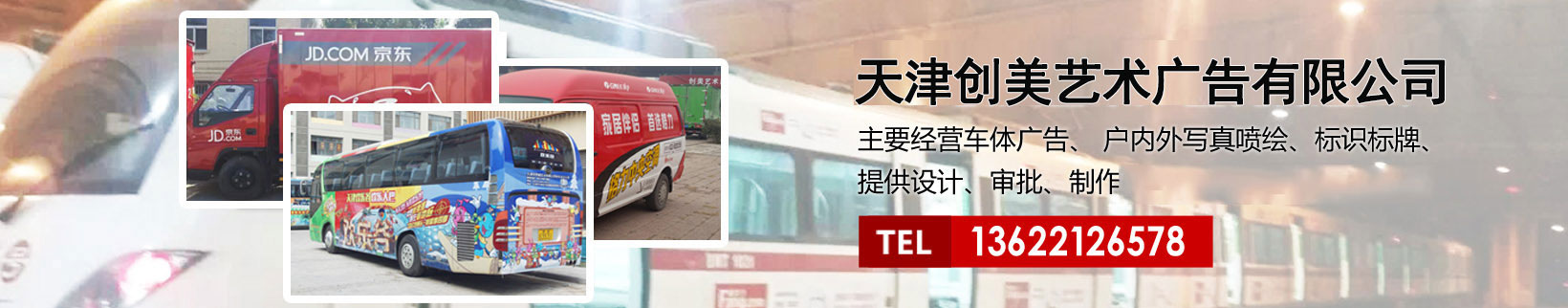 天津創(chuàng)美藝術(shù)廣告有限公司主要經(jīng)營車體廣告、 戶內(nèi)外寫真噴繪、標(biāo)識(shí)標(biāo)牌、提供設(shè)計(jì)、審批、制作、發(fā)布的服務(wù)。